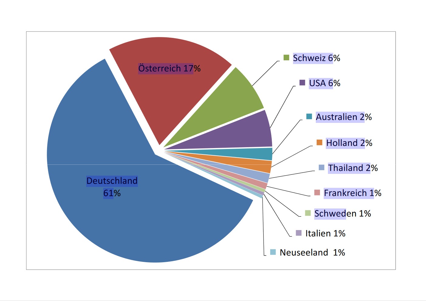 Dass Deutschland hier überproportional vertreten ist, überrascht nicht, ist doch die Webseite von Schenk durchwegs in deutscher Sprache gehalten. Aber zwei Werte überraschen doch: Österreich ist stark vertreten, während die etwas schwächere Schweiz mit den USA gleichgezogen hat. Die Stärke Österreichs hat sicher auch damit zu tun, dass unsere Nachbarn - im Gegensatz zu Deutschland - ein hervorragendes Führerschein-System haben, in dem die Segler sehr frühzeitig und eng an die Praxis herangeführt werden. Außerdem ist für die Österreicher das "Heimatrevier" Mittelmeer, sicher schon geographisch ein weltoffeneres Revier als die deutsche Ostsee, während Binnenland Schweiz bekanntermaßen leider über kein Meer verfügt.