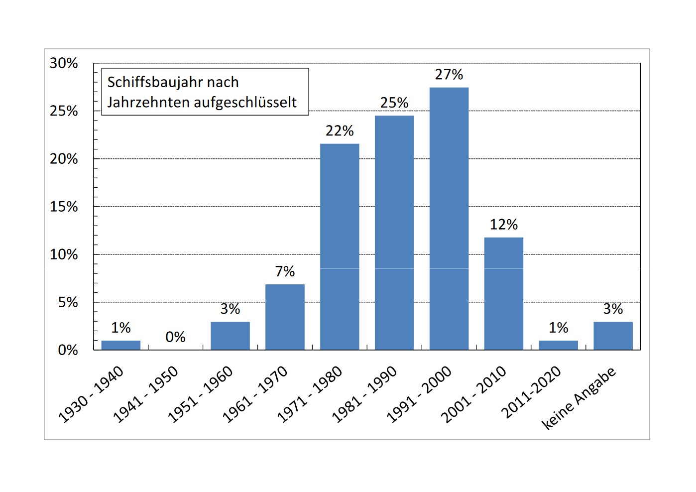 Die meisten Jachten wurden in den 90er Jahren hergestellt, aber auch in den 80er und 70er Jahren. Da generell in den letzten Jahren die Weltumsegelungen zugenommen haben, lässt ein Blick auf das Schiffsbaujahr erkennen, dass die meisten das große Abenteuer mit einer Second-Yacht unternommen haben, und damit, der "Not" gehorchend, bei der Anschaffung des Schiffes schon mal einiges an Kapital eingespart haben.